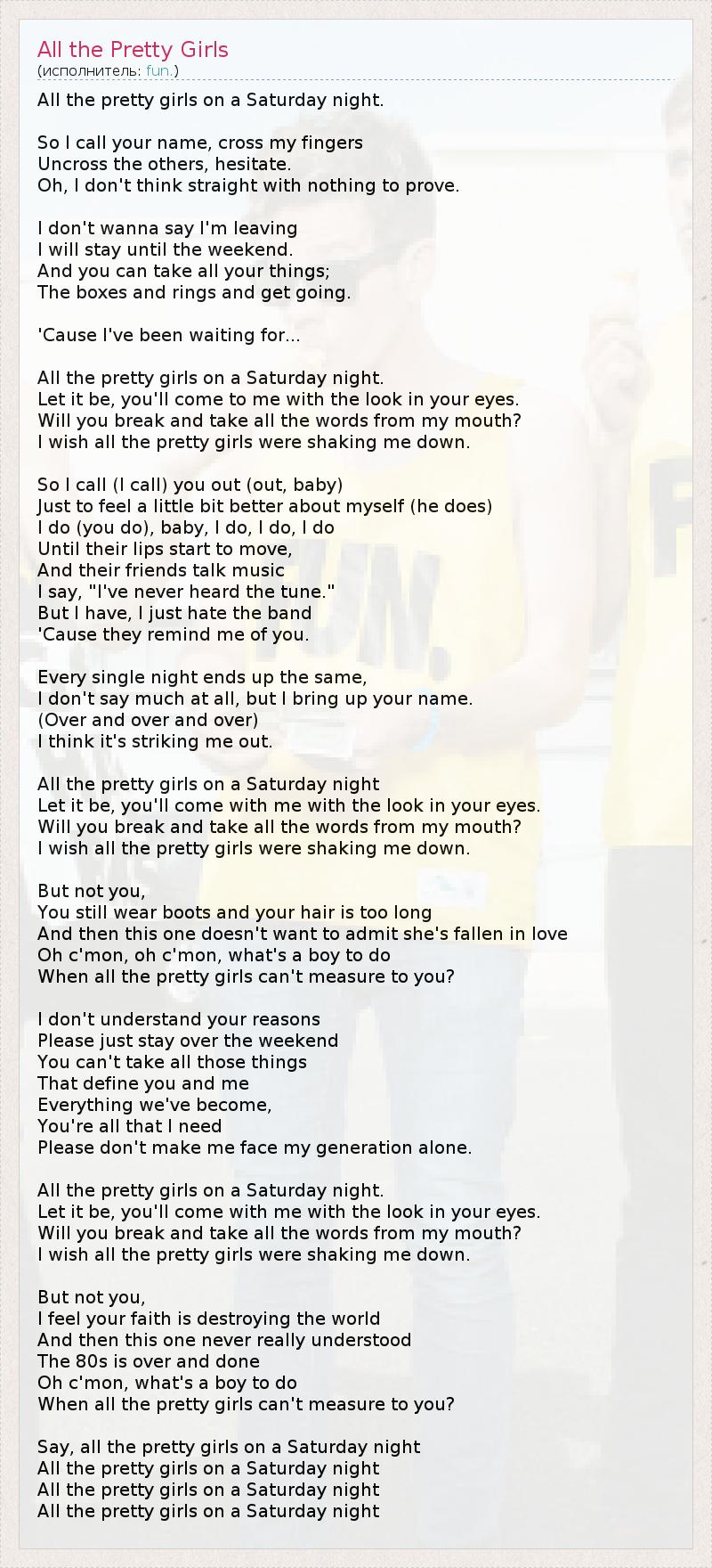 ГлавнаяИсполнителиfun.All the Pretty Girls