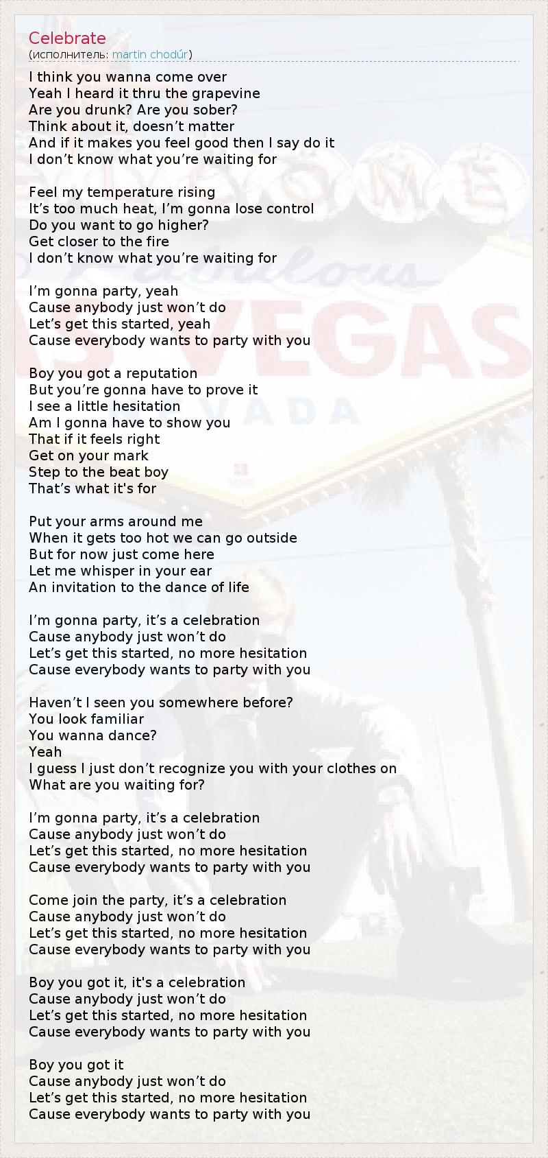 А как ты думаешь, о чем песня "Celebrate" ?
