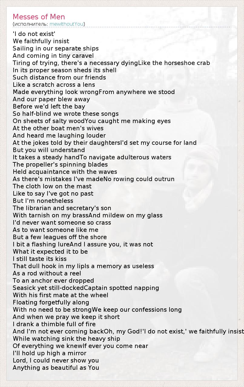 А как ты думаешь, о чем песня "Messes of Men" ?